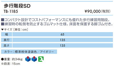 TB-1185 歩行階段SD コンパクト設計でコストパフォーマンスにも優れた歩行練習用階段。