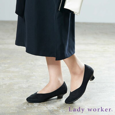 [ ぺたんこ ヒール ] レディース パンプス アシックス レディワーカー ウォーカー 立ち仕事 パンプス 疲れない [ 靴 女性 婦人 軽量 ローヒール ブラック ブラックスムース シンデレラサイズ むくみ むくまない 巻き爪 外反母趾 3cm 歩きやすい 仕事 オフィス 冠婚葬祭 ]