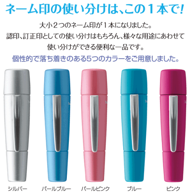 メーカー希望小売価格はメーカーカタログに基づいて掲載しています ●9mmと6mmの印面を1本で使い分けできる ツインタイプのネーム印! ●ポンポン捺(お)せるシヤチハタ印! ●インキが補充できて経済的!(補充インキは別売りです) 9mm用:XLR-GP(カートリッジ2本入) 6mm用:XLR-9(カートリッジ2本入) ●ポケットに入れて持ち運びが便利なクリップ付き! ●携帯に便利なストラップ用の穴付き! ※ストラップは付いておりません。