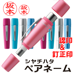 シャチハタ ペアネーム(ネーム印+訂正印)認印 印鑑 看護師 ナース ネーム9 ネーム6 はんこ ハンコ ツインネーム ストラップ穴付 シヤチハタ [e]
