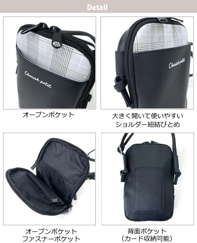 ・CHERISH Petit チェリッシュペティット チェック切り替え スマホが入る便利なショルダーバッグ。