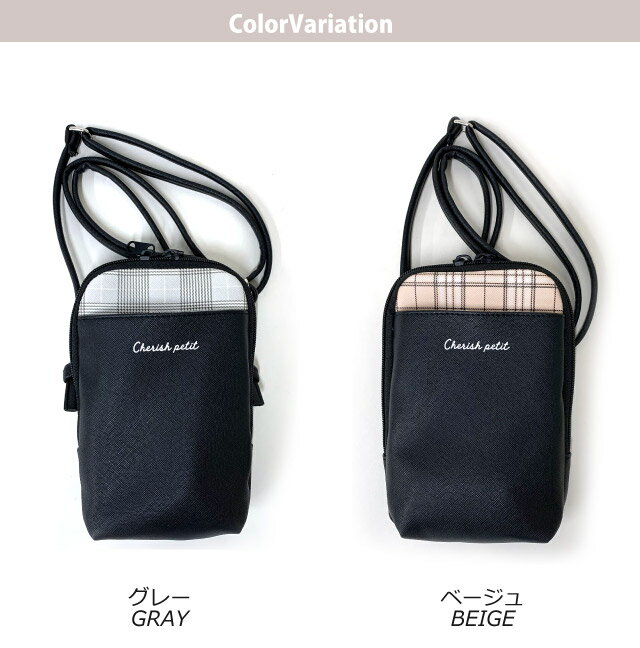 スマホショルダーストラップ 紐 CHERISH Petit チェック切り替え マルチショルダー wzr-512 スマホポシェット 本革 財布 レディース スマホ収納 全機種対応 ミニマリスト スマホポーチ 女性 大人 人気 小学生 スマホケース ショルダー 中学生 高校生 おしゃれ ポシェット