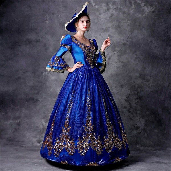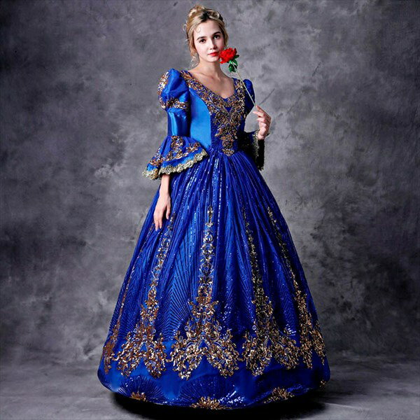 貴族 ドレス ロングドレス 貴婦人ドレス 演奏会 袖付き クリスマス仮装 パーティードレス お祝い 演出 お姫様 カラードレス 衣装 ステージ 舞台 中世 ブルー コスチューム 貴族服ドレス da485s1s1t2/代引不可